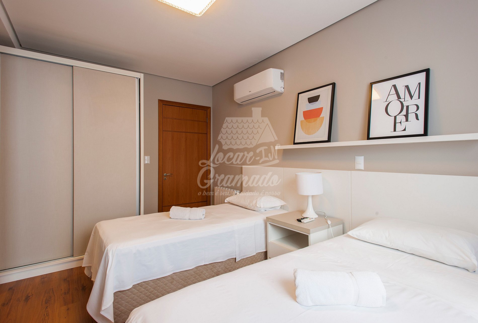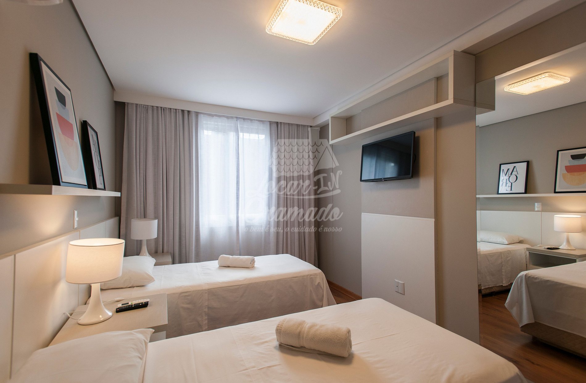 - Duas camas de solteiro (com possibilidade de uni-las e transformá-las em casal)