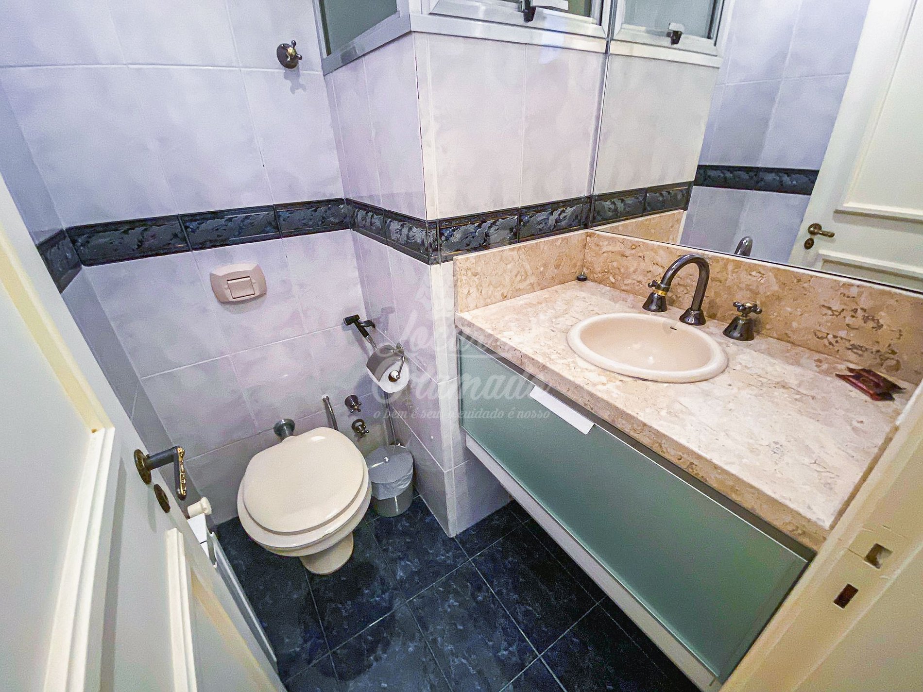 As duchas higiênicas precisam ser trocadas, o vazamento delas resultou no descolamento e manchas no piso da suite e da sala.