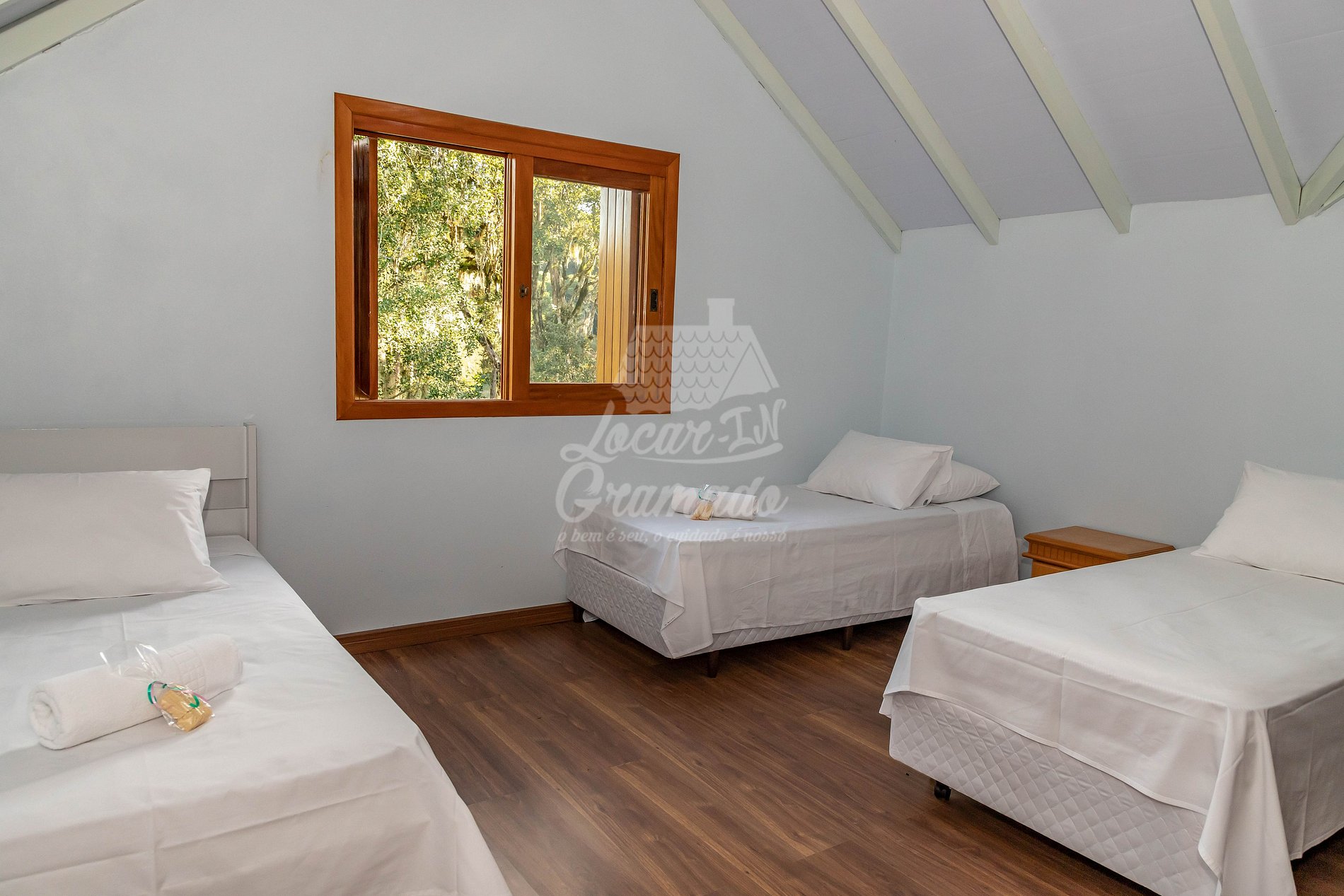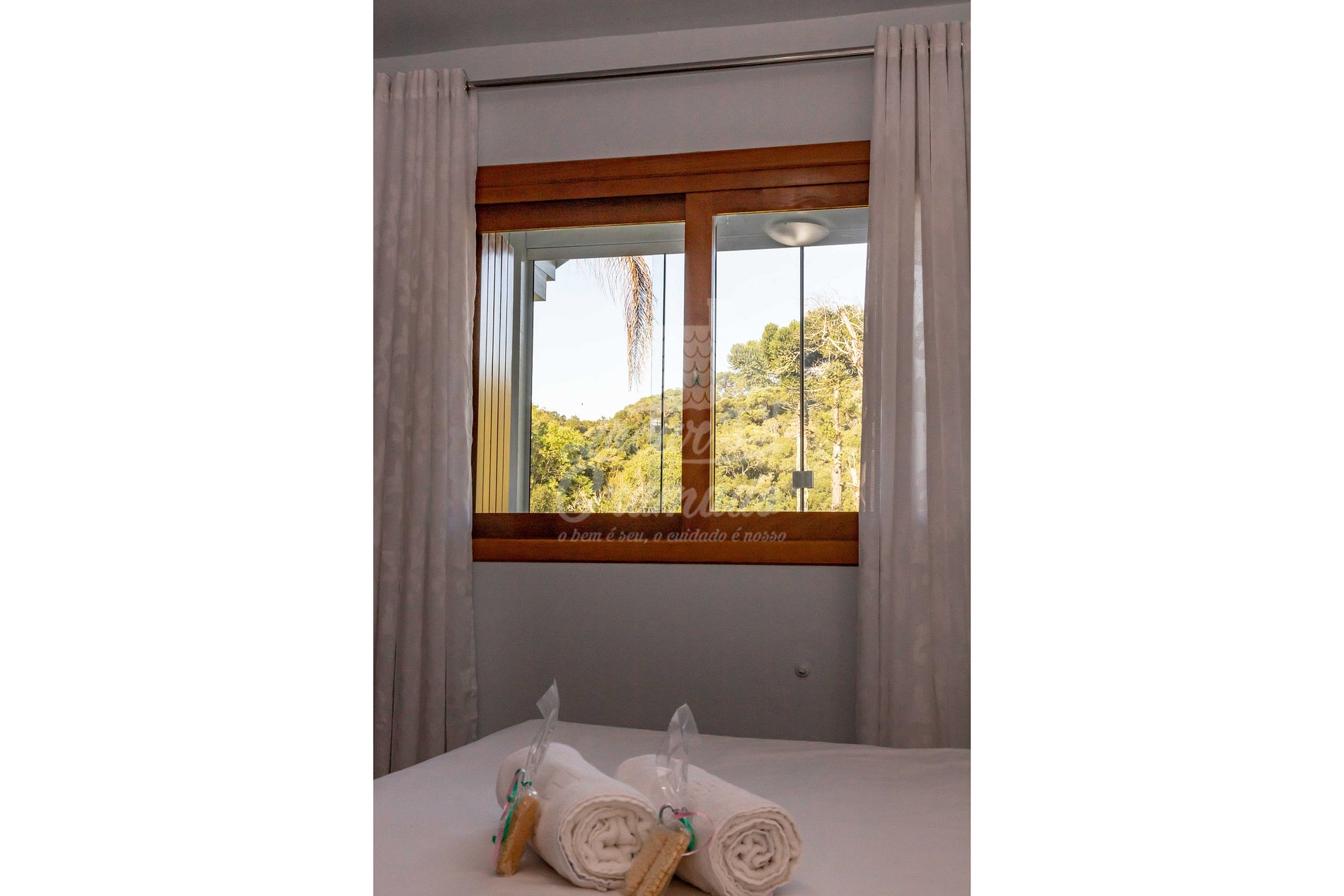 Fornecemos uma toalha de banho por pessoa, uma toalha de rosto por banheiro, uma toalha de piso por banheiro, um jogo completo de roupa de cama, não fazemos reposição ou troca durante a estadia;