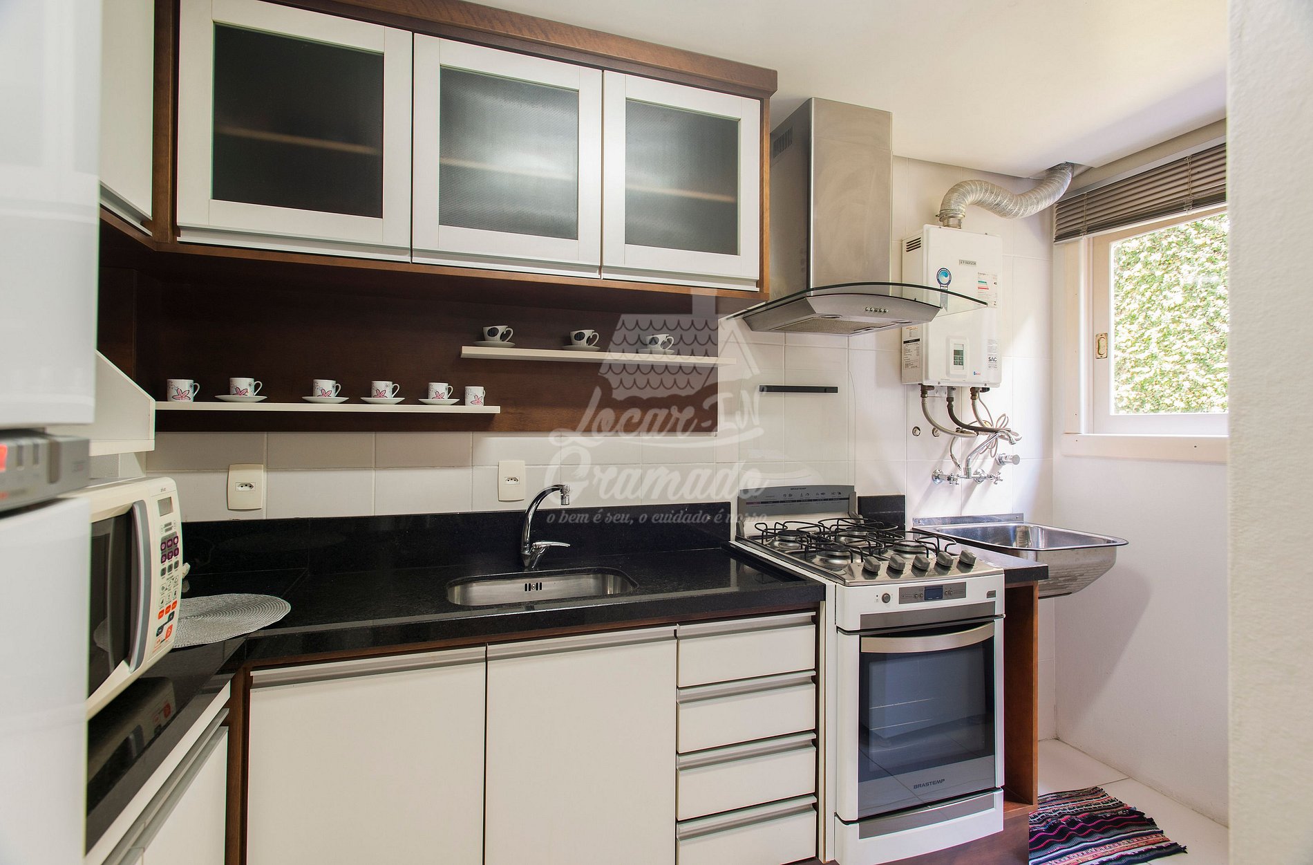 O apartamento é completíssimo, muito agradável, aconchegante.