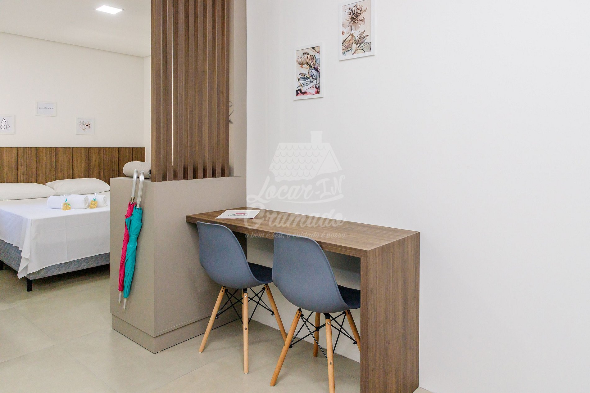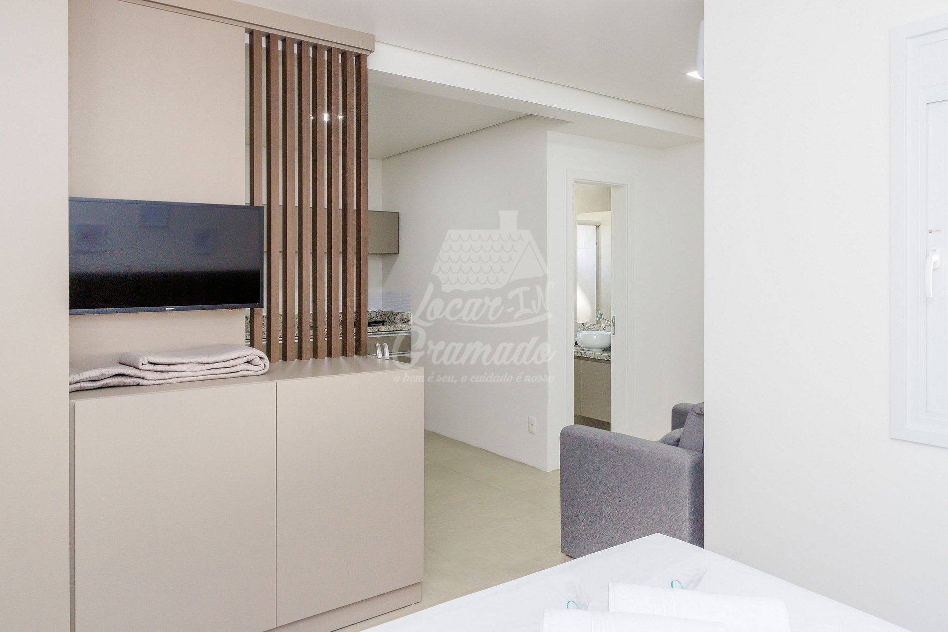 O apartamento é exatamente como nas fotos, muito limpo, com vários itens de cozinha. As roupas de cama são de hotelaria, cobertores muito bons e novos. A localização é ótima, perto do centro, tem padaria próxiima para o café da manhã, mas fica em rua íngreme, dá para fazer tudo a pé se não estiver chovendo mas ressalto que para chegar à Av das Hortênsias são duas quadras, uma delas de subida forte. A Carin e as funcionárias da Locar In são muito ágeis e atenciosas, o atendimento é de excelência, muito bom. A estrutura de acomodações possui 4 apartamentos com 1 vaga de garagem. Por não ter muito espaço para manobrar, se você tiver carro grande ou utilitário, peça a garagem nr 4. Na noite em que fiquei hospedada, o horário de silêncio não foi respeitado, ficamos acordando várias vezes entre 23h30 e 2h com barulho de móveis arrastando, como se estivessem redecorando o apartamento. Acredito que tenha sido algo pontual, então indico sim esta acomodação e possivelmente voltaremos.