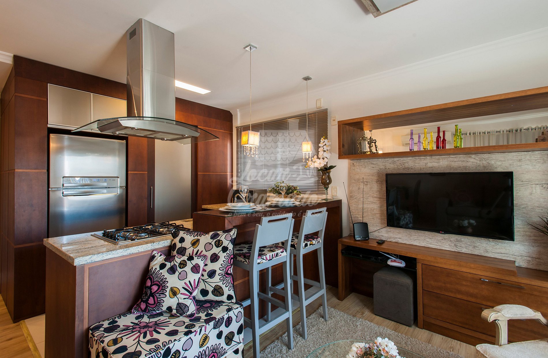 Completíssimo, funcional, nele você terá a opção de preparar um belo jantar na cozinha toda equipada.
