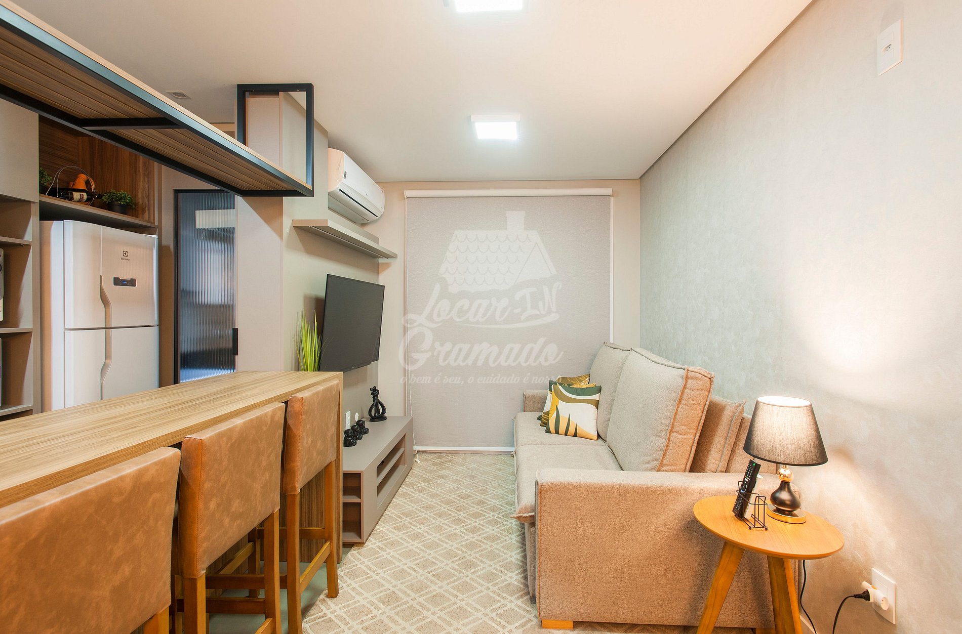 O apartamento é compacto mas muito aconchegante, proporciona uma ótima experiência aos hóspedes que visitam Gramado em busca de um bom custo-benefício.